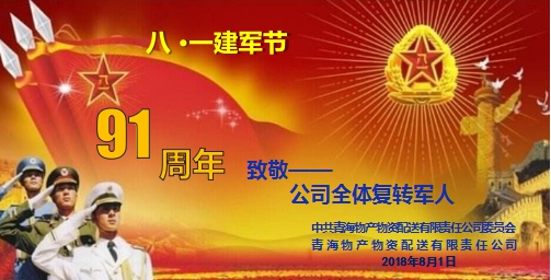 (物產(chǎn)配送公司?訊?龐玲/文攝)8月1日,值此中國人民解放軍建軍91周年之際,青海物產(chǎn)配送公司開展了復(fù)轉(zhuǎn)軍人座談慰問活動,感謝他們?yōu)楣景l(fā)展做出的貢獻(xiàn),并向公司15名復(fù)轉(zhuǎn)軍人干部職工致以節(jié)日的問候和美好祝福。