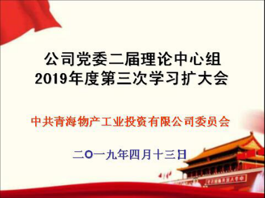 (工投公司 訊 陳倫/文 潘莉/攝)2019年4月13日上午,青海物產(chǎn)工業(yè)投資有限公司黨委召開2019年度第三次二屆黨委理論中心組學習擴大會。公司黨委書記、董事長、總經(jīng)理張允忠同志主持會議,公司黨政班子成員、中心組學習秘書、公司全體黨員、助理以上中層管理人員、職能部室全體職工以及入黨積極分子共計50余人參加會議。