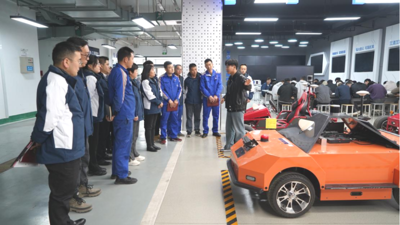 在參觀汽車專業(yè)實(shí)訓(xùn)中心時(shí),交通運(yùn)輸學(xué)院汽車系智慧互聯(lián)專業(yè)老師為支部黨員進(jìn)行了精彩的現(xiàn)場(chǎng)授課。大家積極請(qǐng)教,互動(dòng)交流,了解了智慧互聯(lián)交流與共享的新型模式,對(duì)生活和工作帶來(lái)便利和智能化體驗(yàn)等內(nèi)容。在場(chǎng)認(rèn)真聆聽(tīng)的“物產(chǎn)工匠”石學(xué)林對(duì)近期將與高校老師組隊(duì)參加“西部陸海新通道建設(shè)全國(guó)引領(lǐng)性勞動(dòng)和技能競(jìng)賽”,有了新的啟發(fā)。下一步,校企雙方將會(huì)對(duì)“優(yōu)服務(wù)、壯產(chǎn)業(yè)”技能競(jìng)賽項(xiàng)目進(jìn)行深入的研究和探討,做到交流“不斷線”,學(xué)習(xí)“不停步”。圖片