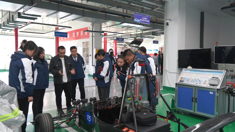 在參觀比亞迪E5純電動(dòng)車實(shí)訓(xùn)區(qū)時(shí),大家看到了學(xué)院2023年全國(guó)行業(yè)職業(yè)技能大賽二等獎(jiǎng)作品的技術(shù)“含金量”,饒有興趣地了解了繪圖-備材-制作-成型的具體過(guò)程,以及對(duì)轉(zhuǎn)動(dòng)、逃生、行駛、焊接、拆裝、車架與車身的測(cè)試。高校的科研成果凝聚了工匠精神傳承和“惟專惟精、匠人匠心”的人才培養(yǎng)理念,在提升職業(yè)道德修養(yǎng)、增強(qiáng)專業(yè)技術(shù)能力、發(fā)展創(chuàng)新創(chuàng)業(yè)能力等方面全面融入了工匠精神培育。在場(chǎng)的黨員仔細(xì)觀摩,向創(chuàng)作單位投以敬佩的眼光。雙方在“工匠精神是培養(yǎng)高素質(zhì)技術(shù)技能人才的目標(biāo)導(dǎo)向,是推動(dòng)產(chǎn)教融合、校企合作的重要實(shí)踐途徑”達(dá)成共識(shí)。